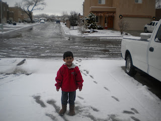 We got snow in the metro! It's a joke we've had since we moved to New Mexico. On the news they always say we're gonna get snow in the metro...and it never happens. So, when it does...we get all excited. So, of course...we had to go outside and play and take some pictures of it. Feels like a white Christmas.